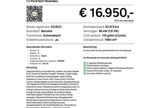 1.2 PureTech Business|Automaat|Trekhaak|Stoelverwarming|Stoelmassage