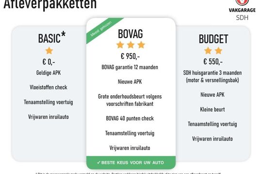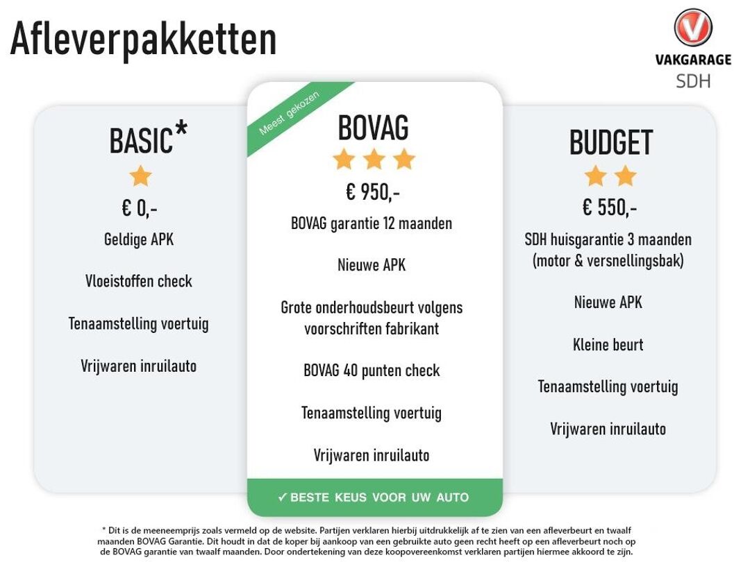 Het BOVAG afleverpakket is niet toepasbaar op occasions met het rode "BUDGET OCCASION" label.