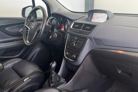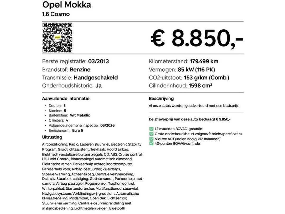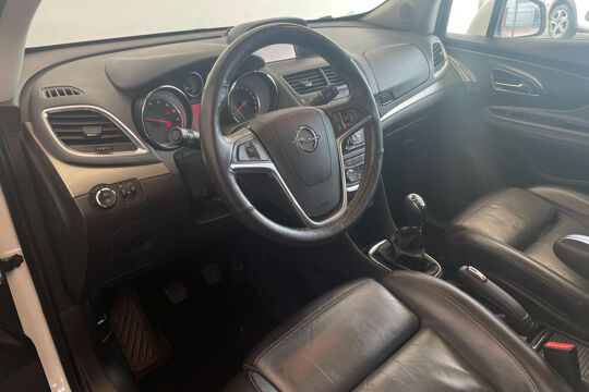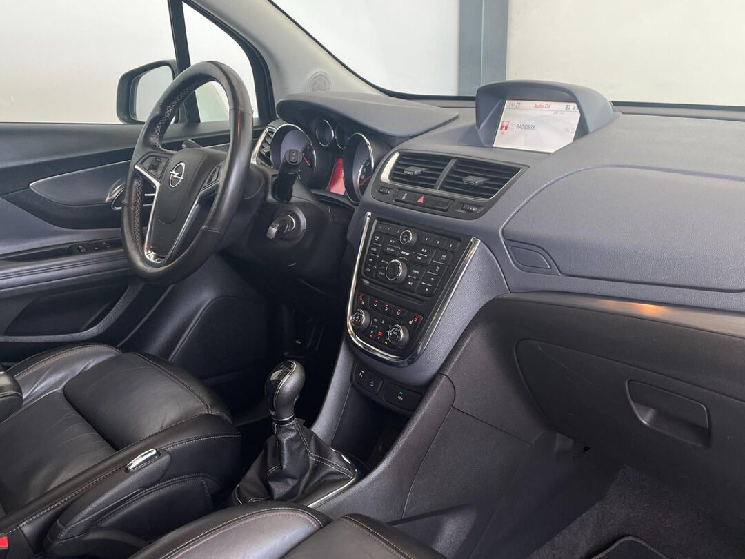 Deze Opel Mokka 1.6 Cosmo is een complete en comfortabele compacte SUV met een 1.6 benzinemotor en handgeschakelde transmissie. De auto is rijk uitgerust met onder andere stoel- en stuurverwarming, parkeersensoren / camera, schuifdak, trekhaak en climate control, wat zorgt voor een aangename en praktische dagelijkse rijervaring. Een veelzijdige en prettige SUV voor dagelijks gebruik én langere ritten.