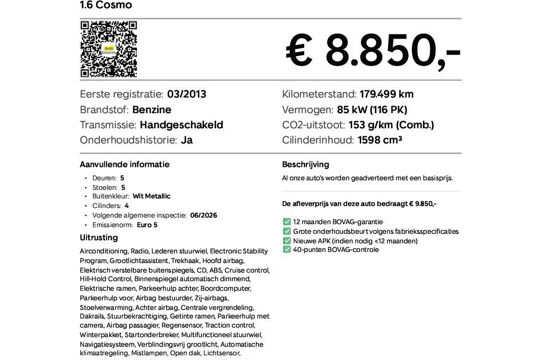 1.6 Cosmo|Stoelverwarming|Stuurverwarming|Trekhaak|Schuifdak|Lederen bekleding