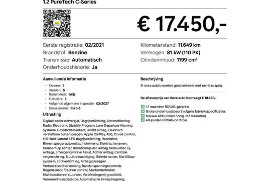 1.2 PureTech C-Series|Lage KM stand|Automaat|Carplay|Android Auto