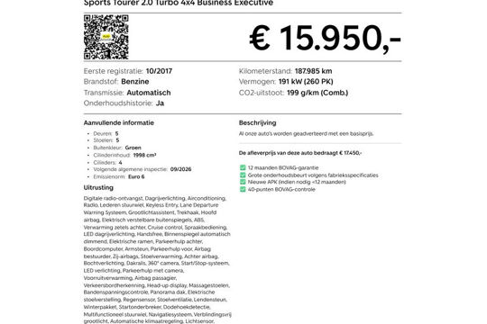 Sports Tourer 2.0 Turbo 4x4 Business Executive|Full options|Panoramadak|Trekhaak|Stoelverwarming Stuurverwarming