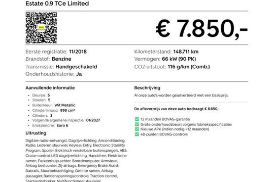 De 0.9 TCe-benzinemotor combineert een vlotte rijervaring met een laag verbruik, ideaal voor woon-werkverkeer, boodschappen of weekenduitjes. De Limited-uitvoering zorgt ervoor dat je direct een fijne basisuitrusting hebt, met onder andere airconditioning en handige parkeersensoren die het inparkeren en manoeuvreren eenvoudig en ontspannen maken.