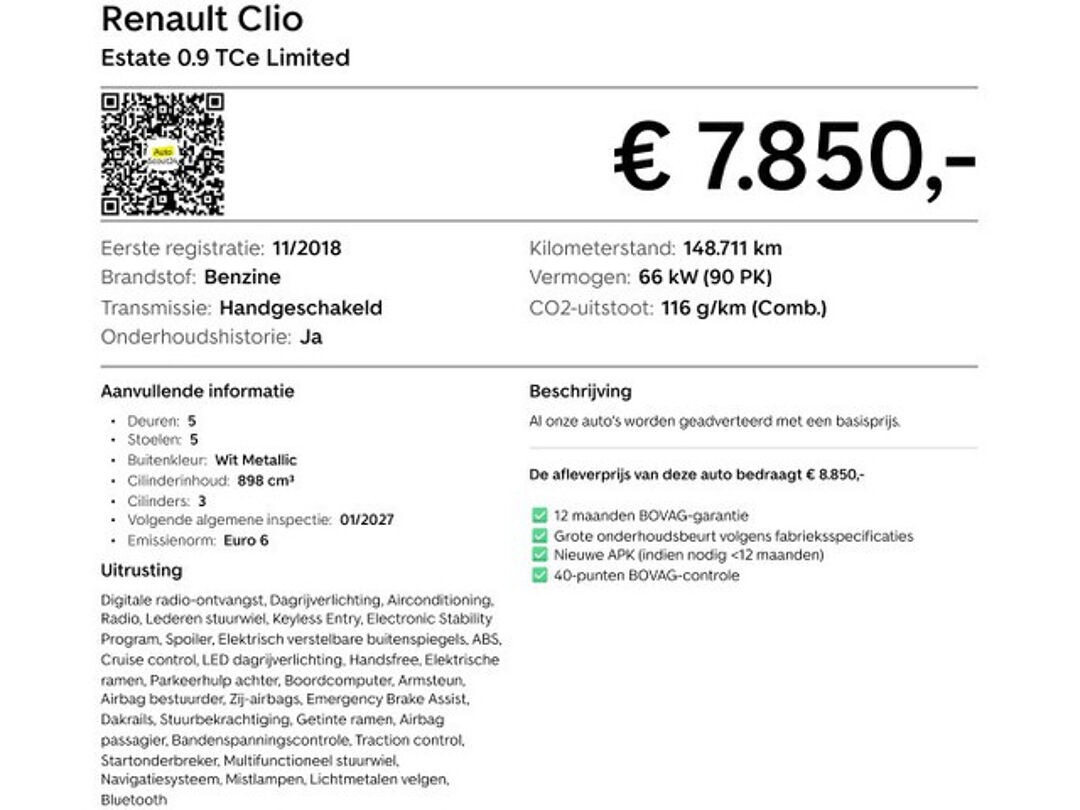Deze Renault Clio Estate is praktisch, comfortabel en goed uitgerust, en biedt precies wat je nodig hebt voor dagelijks gebruik én net dat beetje extra ruimte en gemak.