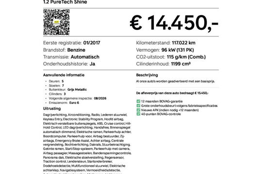 1.2 PureTech Shine|Automaat|7 Persoons|3x isofix|Trekhaak|Panoramadak|Stoelmassage