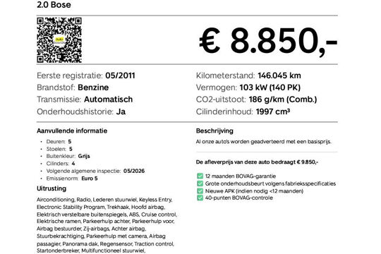 2.0 Bose|NAP|Automaat|BOSE audio|Panoramadak|Trekhaak